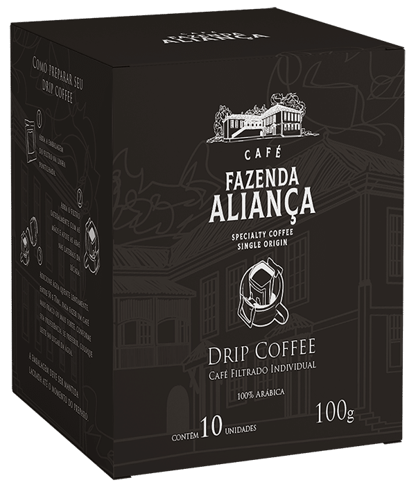 O Café Fazenda Aliança que você já conhece, em uma versão prática para facilitar o seu dia a dia. Drip Coffee Café Fazenda Aliança é um filtro com café torrado e moído para uso individual, possui hastes flexíveis com encaixe perfeito para ser usado diretamente na sua xícara.